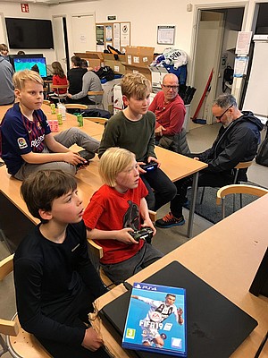 En trevlig kväll på Enskede IP med pizza och FIFA turnering, den startade med att Per hade en teorigenomgång om de fyra S:en i fotboll.