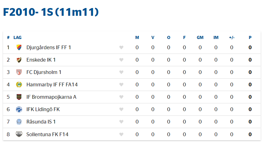 Till denna serie F2010-1S 11vs11 kommer nedan lag att spela med dubbelmöten. Starka lag och jämna utvecklande matcher kommer att bidra till ännu starkare lag & utveckling.