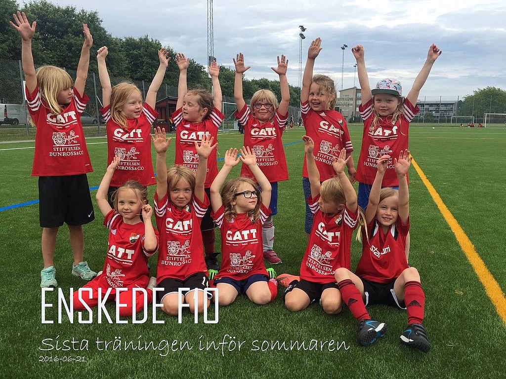 Alla lag hade redan tagit ledigt förutom F10 Grön, snyggt med så bra uppslutning. Tyvärr tar även vi sommaruppehåll men kör igång igen den 16/8. Vi skickar kallelser på vanligt vis. Bada mycket, ta en kort springtur...och sparka mycket boll så ses vi snart.